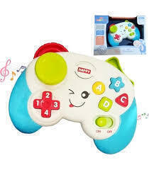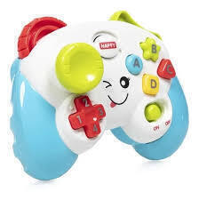 O controle de video game musical Pimpolho é interativo e divertido. Imita um controle de verdade, com vários botões e sons que estimulam o desenvolvimento da criança.