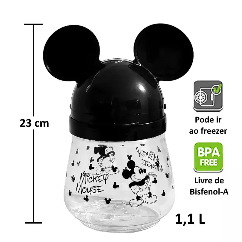 Com a qualidade Plasútil a garrafa de 1,1 litros do Mickey Lúdica Flip está linda e cheia de detalhes. A tampa é de rosca com abertura retrátil que libera o canudo de silicone para beber, as orelhas são um charme a parte. Super útil e ecológica, possui alça destacável para carregar aonde for, escola, passeios, sempre mantendo os pequenos hidratados ao longo do dia. Especificações: Fabricante: Plasústil Referência: 17453 Material: PET e PP Capacidade: 1,1 L NÃO lavar no lava-louças Pode ir ao Freezer Armazena bebidas quentes até 50°C Livre de BPA Conteúdo do pacote: 1x Garrafa Lúdica Flip Mickey 1,1 Litros